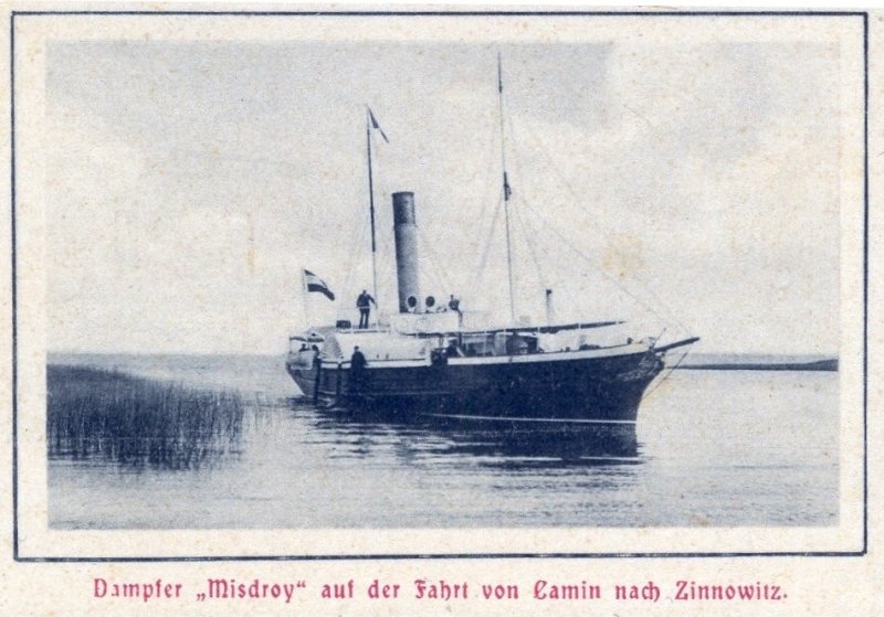 Der Passagier-Fracht- und Schleppdampfer Misdroy wurde 1859 als drittes Schiff für J.F. Braeunlich bei der Stettiner Maschinenbau-AG „Vulkan“ gebaut. Zunächst auch als Seeschiff registriert, war es aber schon 1862 nur noch als Binnenschiff registriert. Ab 1873 wechselhafte Übernahmen bevor es 1880 an W. Kunstmann Stettin verkauft wurde.