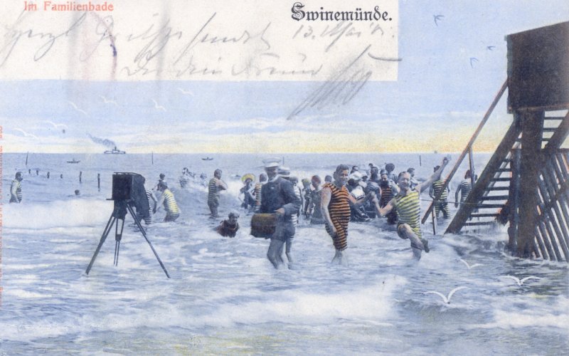 In den Ostseebädern aber nur kurze Zeit, denn dort begann bald die Ära der getrennten Damen- und Herrenbäder. Diese wurden an unterschiedlichen Strandabschnitten errichtet und durch einen breiten neutralen Bereich zusätzlich voneinander abgegrenzt. Dies reichte aber noch nicht, denn aus Zinnowitz ist überliefert, dass sich die Herren während der Badestunden der Damenbadeanstalt nur bis zu 75 Meter nähern durften. Bei Übertretung waren dann 9 Mark Strafe zu zahlen.