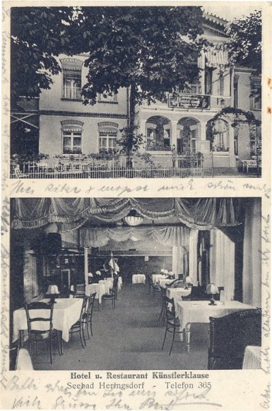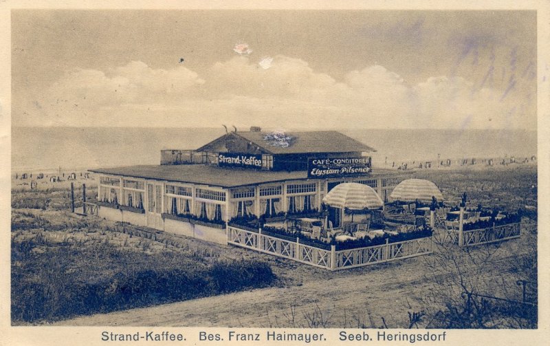 Das Strand-Kaffee von Franz Haimayer stand bis Anfang der 50er Jahre des vergangenen Jahrhunderts unterhalb der Strandstraße, während sich das Restaurant Haimayer in der Badstraße 1 befand. Als Kind kam ich öfter mit meiner Mutter an dem Restaurant vorbei und immer hörte ich aus dem Haus Tanzmusik, dies war in der Zeit kurz nach dem Krieg etwas Besonderes. Neugierig geworden fragte ich später diesbezüglich ältere Erwachsene und erfuhr, dass dort sehr oft Abschied von der Heimat "gefeiert" wurde, d. h. Vertriebene aus Swinemünde und Umgebung gaben bei Haimayer ihr letztes Geld aus und reisten danach in Richtung Westen weiter.
