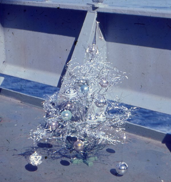 Für die Mannschaftsmesse war auch ein Weihnachtsbaum vorgesehen, nur wurde von der Schiffsleitung bei diesem Baum die Variante Spritzpistole abgelehnt. So lag nun der Baum ohne Nadeln von niemand beachtet traurig und verlassen auf dem Deck unseres Schiffes.