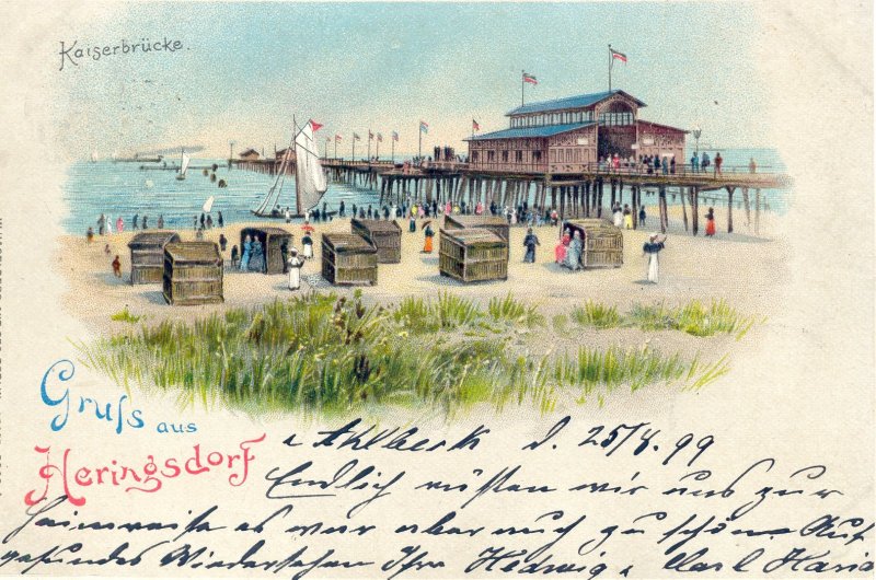 Das beeindruckende Seebrücke in Heringsdorf wurde in den Jahren 1891-93 erbaut. Durch kaiserlichen Erlass vom 13. Januar 1891 durfte die Brücke den Namen Kaiser - Wilhelm - Brücke führen. Die betreffende Kabinettsorder besagt: