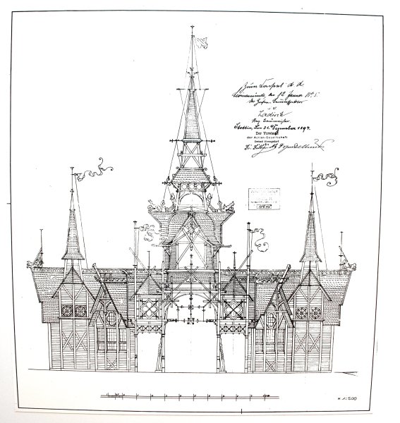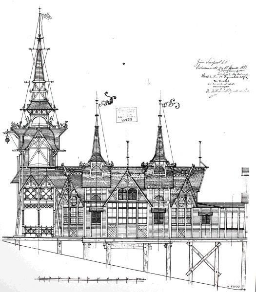 Es ist aber bisher nur Johannes Lange als Architekt des imposanten Gebäudes belegt, ob der Wolgaster Betrieb am Bau beteiligt war, ist noch nicht geklärt. Neben den Türmen waren auch die Holzblenden charakteristisch für die äußerst filigrane Kaiser – Wilhelm - Seebrücke.